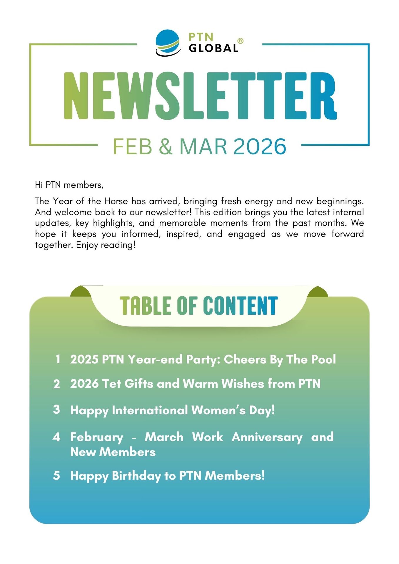 PTN Newsletter - February & March 2026